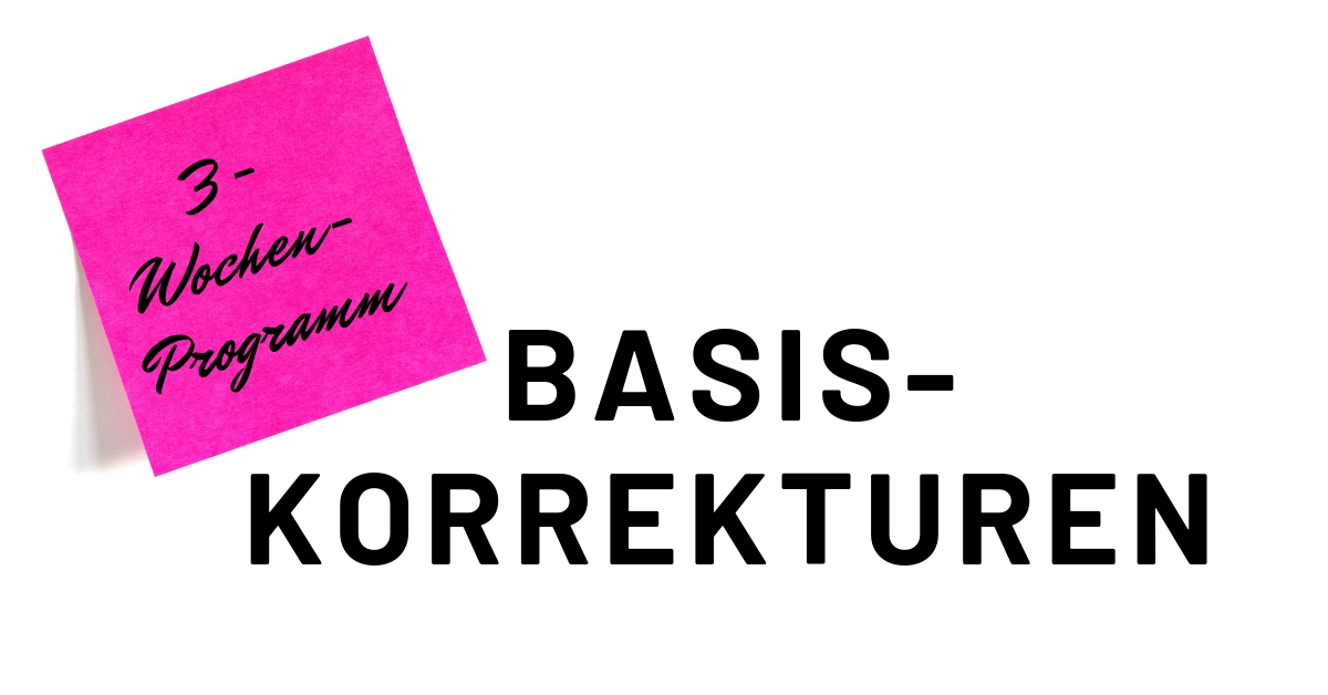 [text_block style=“style_1.png“ align=“left“]Ich empfehle dir, diese Basiskorrekturen von mir als 3-Wochen-Training zu machen. Also je Woche einen Absatz.